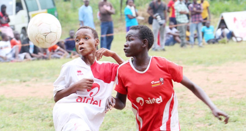 Mwanahalima Adam (left) of St. Johns Girls High School battles for the ball with Winnie Atieno (right) of Kwale Girls High School in one of the girls quarter final soccer match during the Coast Region Secondary Schools Term 2B games at Shimo la Tewa High School, July 15, 2016. St. Johns won 2-0 but both teams qualified for the semi finals. [PHOTO BY GIDEON MAUNDU/STANDARD].
