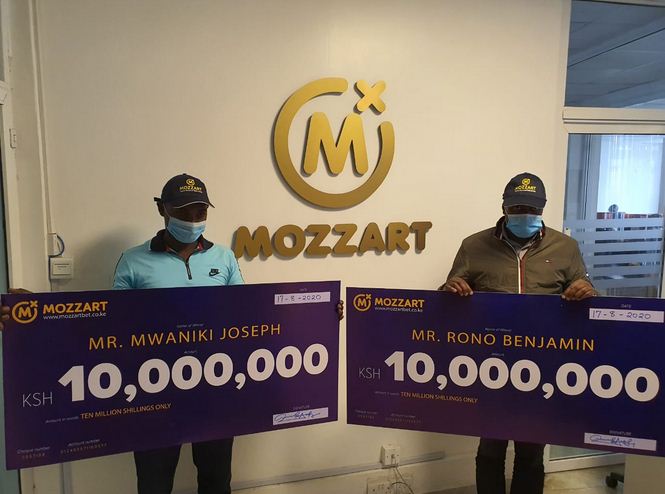 Mr. Mwaniki Joseph, a farmer from Embu County, and another one, Rono Benjamin from the vast county of Uasin Gishu correctly predicted the same 13 Mozzart Daily Jackpot games on the same day and were each paid out 10 Million Shs instantly.
