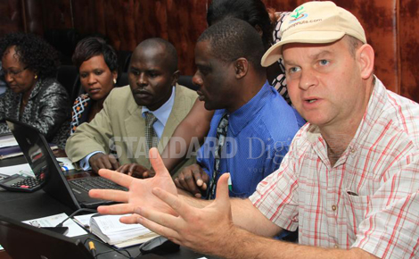 CropNuts Laboratory Services Managing Director Jeremy Cordingley briefs the Press on what their ? ndings were when they tested soils in the county. He said the same exercise needs to be rolled out in other counties. [PHOTO: PETER OCHIENG/STANDARD] |