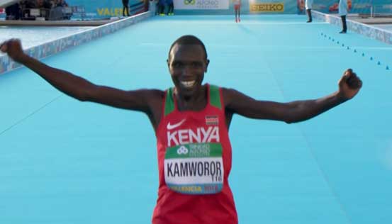 Determination and confidence - that aptly decribes Geoffrey Kipsang Kamworor’s drive to strike a third win at the IAAF World Half Marathon Championships on Saturday night.