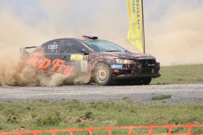 Carl Tundo and his navigator Tim Jessop in Mitsubishi Lancer at Kedong. [PHOTO/David Gichuru]