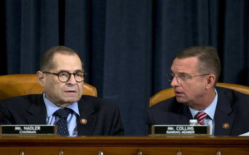 House Judiciary Committee Chairman Jerry Nadler (L) and Doug Collins, the senior Republican on the committee, in a hearing on the articles of impeachment against President Donald Trump. [AFP]