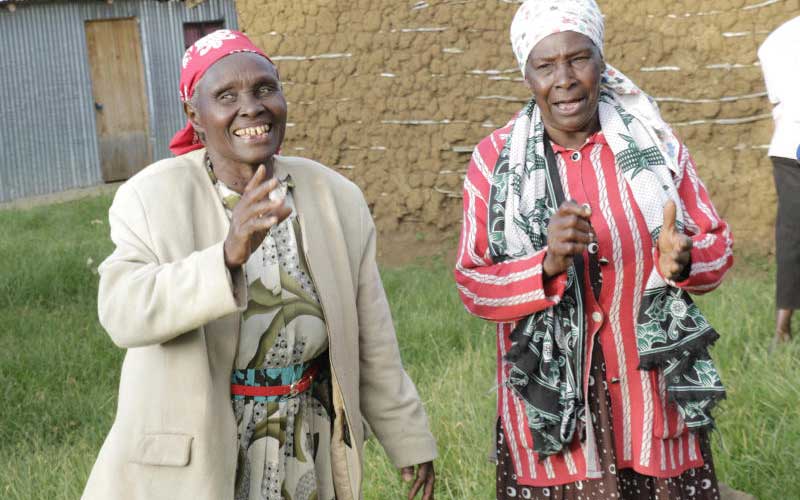 Nyakinyua traditional dancers Mary Muthoni (left) and Lucy Njambi during the interview in Piave village, Njoro, Nakuru County on January 16. [Kipsang Joseph, Standard]