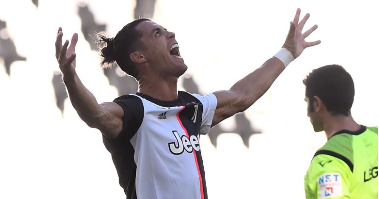 Cristiano Ronaldo finally scored from a free kick for Juventus and goalkeeper Gianluigi Buffon made a record 648th Serie A appearance as the league leaders beat their smaller neighbours Torino 4-1 in the Derby della Mole on Saturday.