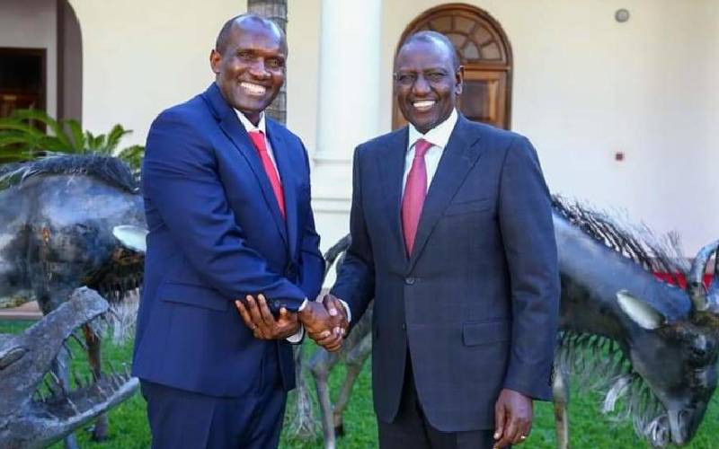 US-based Kenyan tycoon Julius Mwale with President William Ruto at State House on Thursday, March 8. [Photo, Courtesy Facebook]