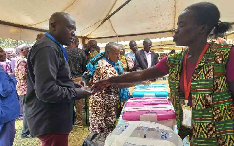 Clerics vote during Pentecostal Assemblies of God Kenya (PAG-K) church elections at Nyang'ori Mission headquarters in Vihiga October 1, 2024. [Brian Kisanji, Standard]