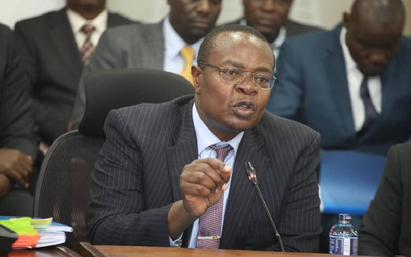 Busia County Governor Paul Otuoma before the Senate's County Public Investments and Special Funds Committee Chaired by Vihiga Senator Godfrey Osotsi. [Elvis Ogina, Standard]