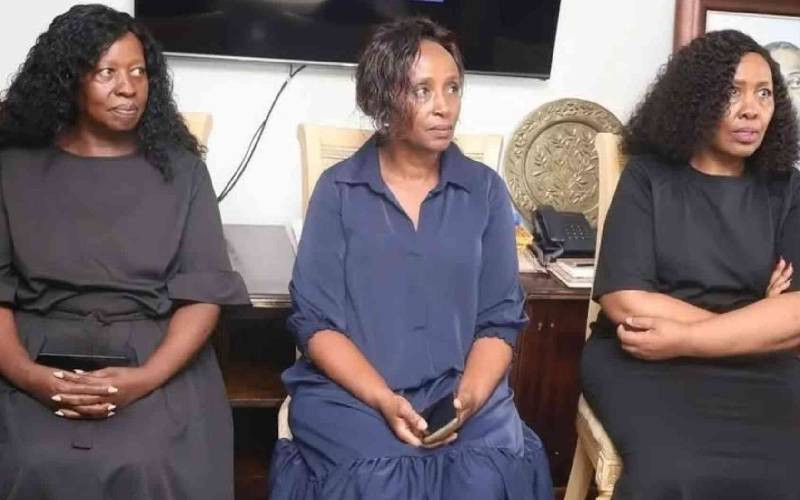 Former Lugari MP Cyrus Jirongo's widows, Christine Nyokabi, Anne Kanini, and Anne Lanoi. [File, Standard]