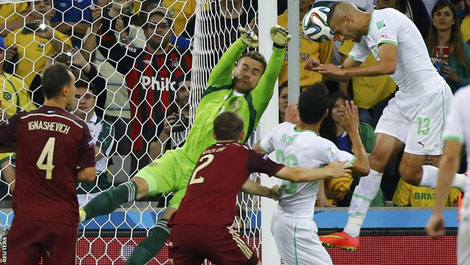A 60th minute header by Islam Slimani gave Algeria the point they needed to reach the second round of the World Cup for the first time with a 1-1 draw with Russia in Curitiba on Thursday.