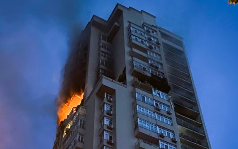 A multi-storey apartment building is damaged during a Russian attack in Kyiv, Ukraine, on June 24, 2023. [VOA]