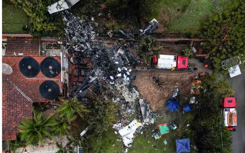 This photo shows an aerial view of the wreckage of an airplane that crashed with 61 people on board in Vinhedo, Sao Paulo State, Brazil, on August 10, 2024. [AFP]