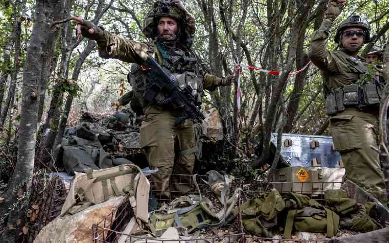 Israeli troops at what they said is an abandoned Hezbollah position, during a controlled embed organised by the Israeli military in southern Lebanon's Naqoura region near the border with Israel. [AFP]