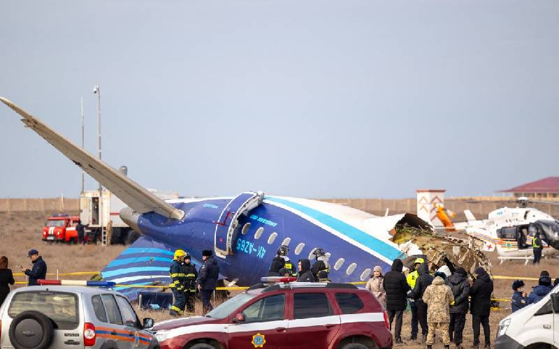 Emergency specialists work at the crash site of an Azerbaijan Airlines passenger jet near the western Kazakh city of Aktau on December 25, 2024. [AFP]