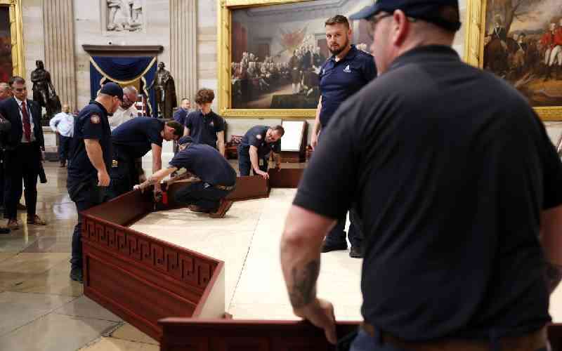 Workers prepare the U.S. Capitol rotunda for President-elect Donald Trump's 2nd term inauguration January 17, 2025 in Washington, DC.[AFP]
