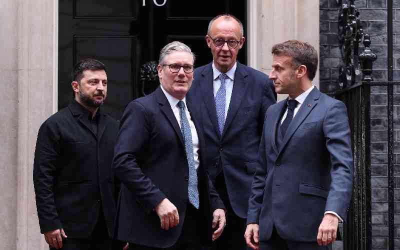 Ukraine's President Volodymyr Zelensky, Britain's PM Keir Starmer, Germany's Chancellor Friedrich Merz and France's President Emmanuel Macron at 10 Downing Street after a meeting in central London on December 8, 2025. [AFP]