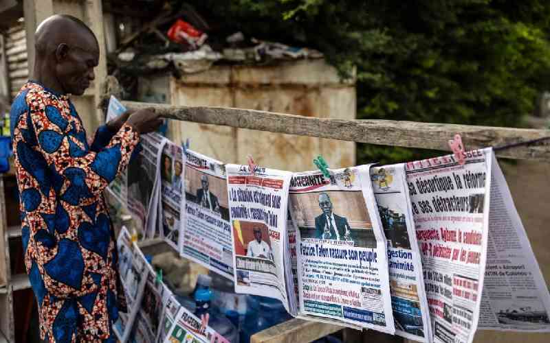 A vendor arranges newspapers on a stall in Cotonou, on December 8, 2025. Benin's president said the "situation is completely under control" after the government thwarted an attempted coup. [AFP]