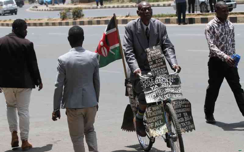 This man rides on a decorated bicyle during NASA demonstrations in Nairobi in 2017. [File, Standard]